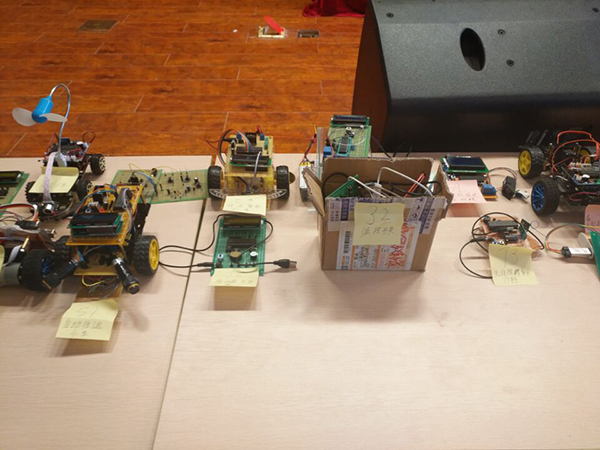 电子设计大赛负责人曾勇作工作报告,他指出本次选拔总决赛主要面向2017年全国大学生电子设计竞赛、“挑战杯”全国大学生课外学术科技作品竞赛、安徽省无人机应用技能大赛等A、B类学科竞赛,目的是遴选出一批专业基础扎实、实践能力较强的优秀学生。自2017年1月份报名开始以来,吸引了全校来自电子通信工程学院、信息工程学院、土木与环境工程等二级学院共84组200多名学生的积极参与,赛前由教师对报名学生进行赛前技术培训和实验操作实训。本次参赛学生人数、参赛作品质量、数量及种类均创历年校园选拔赛新高,相比于比去年增加了不少特色,质量上也有所提高,如涌现出无人机、四轴飞行器、激光雕刻机、智能小车、智能家居系统等优秀电子作品。