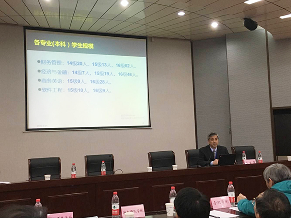 随后,我校和淮南师范学院、池州学院三所高校分别就对口招生、专升本、中外合作教育三类专业人才培养问题作了主题发言。国际教育学院院长范东生代表我校作了题为“安徽新华学院中外合作办学特色介绍”的主题交流发言,详细介绍了我校在中外国际合作教育方面的特色做法,并提出教师教学的常态化和规范化管理、如何解决学生差异化的学习需求等一系列目前亟需解决的问题。