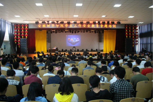 本网讯(通讯员:解淑芹)4月27日下午,由学生工作处、保卫处主办的全校学生工作“高校多发性案件解析及防范”专题培训会在校大礼堂举行。合肥市公安局高新技术开发区分局法制大队主任谢贺军为我校100余名学工人员和800余名学生干部进行了安全知识专题培训。
