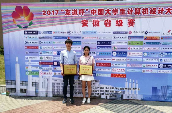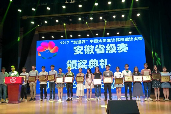 本网讯(通讯员:刘刚)6月4日,2017年“友道杯”中国大学生计算机设计大赛安徽省赛颁奖典礼在安徽大学磬苑校区艺术楼举行,我校学子在软件应用与开发、数媒设计、微课与教学辅助、动漫游戏、中华民族文化、微电影等组别积极报名参赛,获奖75项,其中一等奖2项、二等奖9项、三等奖17项。