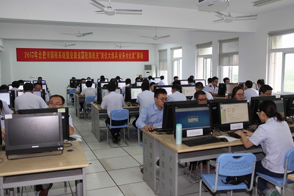 本网讯(通讯员:陈青)9月2日,2017年合肥市国税系统暨安徽省国税局机关“岗位大连兵 业务大比武” 考试在我校举行,来自全市1200余名国税系统工作人员参加了此次考试。