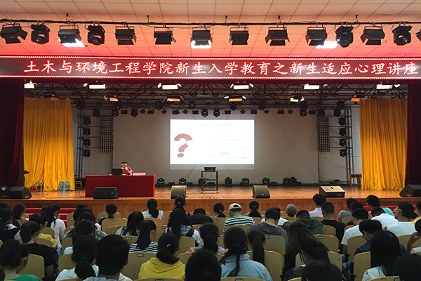 针对新生进入新环境后心理适应的各种问题,土木与环境工程学院于9月22日上午在学校大礼堂组织了新生入学教育之大学生心理适应讲座。本次讲座邀请了学校心理健康教育中心主管凌晨老师作为主讲人,讲座主题为“新起点 心健康”。凌晨从面对大学-“谁的青春不迷茫”;走进大学-“遇见未知的自己”;适应大学-“爱的五种语言”;离开大学-“活出生命的意义”四个方面,结合身边的心理案例,生动形象的给新生们讲解了如何适应大学生活,如何规划大学生活,如何充实大学生活。她还鼓励同学们积极参加学校的集体活动,让自己的大学生活更加精彩,让自己的人生活得更有意义。