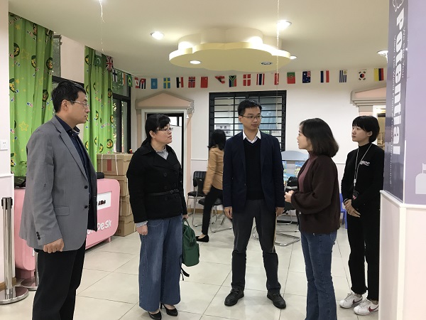 本网讯(通讯员:马兰 摄影:马兰)为拓宽2018届毕业生实习实训就业平台,10月12日上午,外国语学院执行院长邵玲,副院长王志宏、周景及行政秘书4人赴合肥市吉的堡幼儿园开展调研。