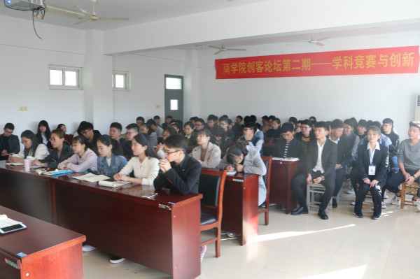 会上,王飞就本次论坛作了指导性发言并鼓励大家要积极参加各种学科竞赛活动,随后,教师邓欣倩作《科学竞赛之与个人成长》专题讲座,他向大家介绍学科竞赛对商科专业人才培养的意义;尤其介绍商科专业学生可以参加的2017年安徽省大学生学科和技能竞赛AB类赛事,重点介绍“挑战杯”;最后,邓欣倩从比赛选题、行文风格、现场表现、坚持原则等方面阐述学科竞赛的重点注意事项。报告过程中,邓欣倩分享了“非羽网络”、“共享雨伞”等历届比赛获得国奖的案例,引导和启发大家要勇于尝试、培养能力、塑造品质和建设团队,积极参加学科竞赛。
