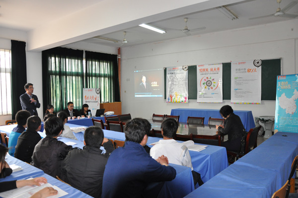 为开拓合肥房地产销售市场,4月11日,中原地产集团公司合肥分公司人力资源部一行五人专程来到土木与环境工程学院招聘人才,招在介绍了中原地产的发展历程与企业概况后,该公司人力资源部经理与同学们相互沟通,解答同学们的问题。