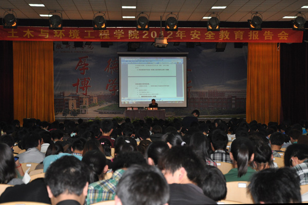 为加强同学们对安全知识的了解,提高同学们的安全意识,做到防范于未然。4月11日下午,土木与环境工程学院邀请保卫处王南贵处长在大礼堂开展安全教育主题讲座。土木与环境工程学院院长方达宪、教学副院长蒋亚龙、行政副院长计勇、全体辅导员和一千多名各班级学生代表参加了本次安全教育活动。