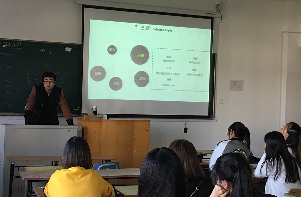 学生们认真听讲并作记录,讲座结束后,学生们还就毕业设计选题的重要问题与教师进行交流。通过此次讲座,不仅使学生们深入了解毕业设计开展的基本流程,而且拓宽了学生们的设计思路,有助于艺术系毕业生毕业设计质量的提升。