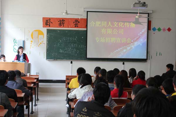 为扎实做好动漫学院毕业生就业工作,为毕业生提供就业渠道,动漫学院携手合肥同人文化传播有限公司举办2012届毕业生专场招聘会,为动漫学子提供更多的就业机会。