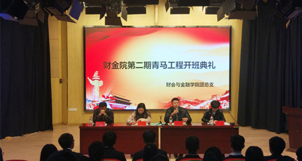 本网讯(通讯员:芮萍)为了进一步做好大学生骨干教育培养工作,12月14日中午,财会与金融学院于新闻演播厅举行第二期“青马工程”开班典礼。财会与金融学院院长助理窦梅朋、行政秘书、学管秘书、团总支副书记以及本期培训班120名学员共同参加了此次开班典礼。