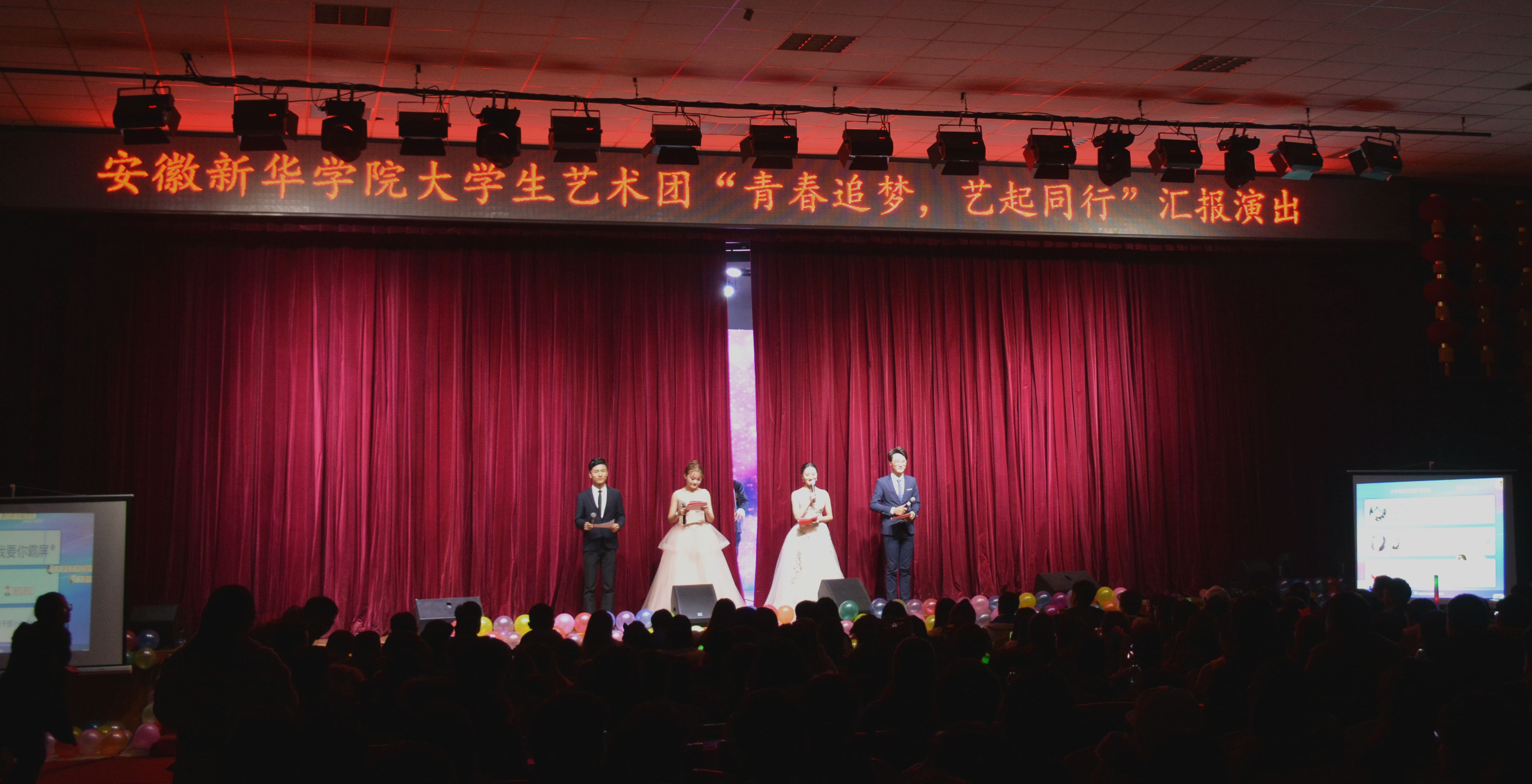 本网讯(通讯员:李孟媛)为丰富校园文化生活,进一步激励全校学生积极参与校园文化建设,组织引领广大青年学生积极投身中华民族伟大复兴的中国梦,推动我校艺术改革和发展,12月26日晚,大学生艺术团在校大礼堂举办以“青春追梦,艺起同行”为主题的汇报演出。学生处处长汪俊东、学生处处长助理柯姗姗、各二级学院师生及其他高校学生代表观看本次汇报演出。