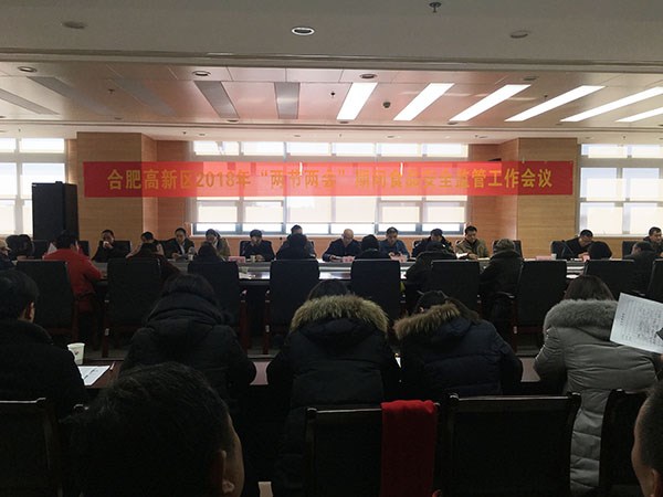 本网讯(通讯员:谭玲)1月9日下午,合肥市高新区食品药品监督管理局召开2018年“春节两会”期间食品安全监管工作会议,我校饮食管理人员及各食堂负责人受邀参加会议。