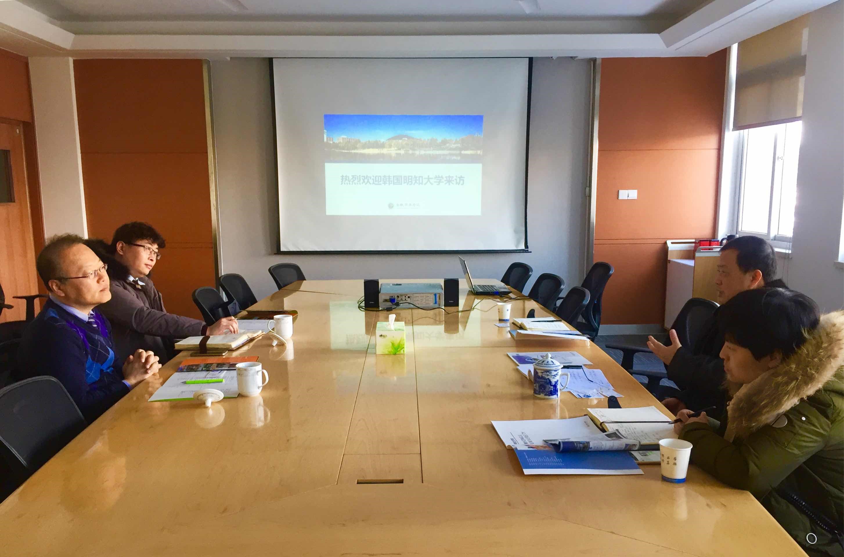 本网讯(通讯员:王晗琴)1月11日上午,韩国明知大学中国事务所教育院长朱载善与韩国明知大学中国代表处主任晏凡森一行来我校交流访问,我校国际交流合作处就发展两校交流合作关系与韩国明知大学进行了会谈。