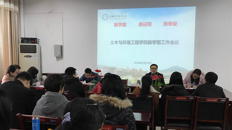 本网讯(通讯员:罗杉)2月28日上午,土木与环境工程学院召开2018年新学期第一次全体教职工大会,部署新学期主要工作。土木与环境工程学院执行院长操宏华、副院长谢汝强、李洁等出席会议,全体教职工参会。本次会议由李洁主持。