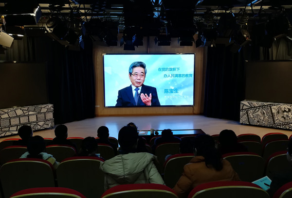 本网讯(通讯员:彭洪磊)3月7日下午,文化与新闻传播学院在新闻演播厅召开“在党的旗帜下办人民满意的教育”政治理论学习会。全体教职工集中观看了教育部党组书记、部长陈宝生关于《在党的旗帜下办人民满意的教育》专题访谈。