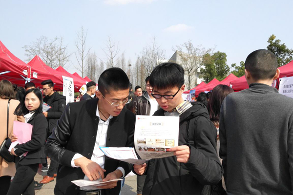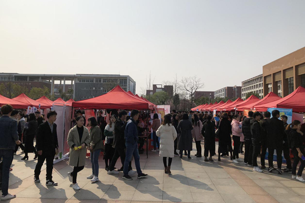 本网讯(通讯员:张小菊)3月21日,我校2018届毕业生春季校园双选会在图书馆南广场举行。本次招聘会吸引合肥万达城文化旅游管理有限公司、合肥国轩高科动力能源有限公司、三只松鼠股份有限公司等共77家企业来我校招聘,提供涉及土木工程、计算机、机械自动化、会计、市场营销等专业共计1260多个岗位。