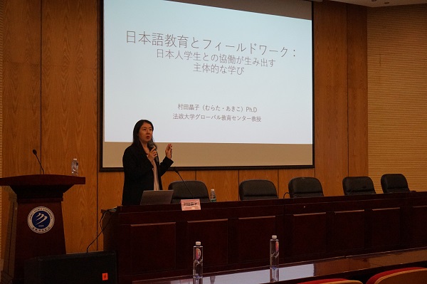 本网讯(通讯员:赵明)近日, 日本法政大学日本语教育学教授村田晶子应邀在我校学术报告厅作了题为《文化人类学》的精彩讲座。讲座由日语系主任宋志强主持,外国语学院日语系全体师生共计一百余人出席聆听。
