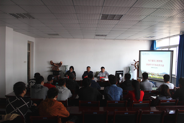 本网讯(通讯员:吴晶)3月27日,电子通信工程学院在会议室召开2018年专升本动员会。电子通信工程学院执行院长计勇、副院长吕翔、相关教师及全体专升本考生参会,会议由吕翔主持。