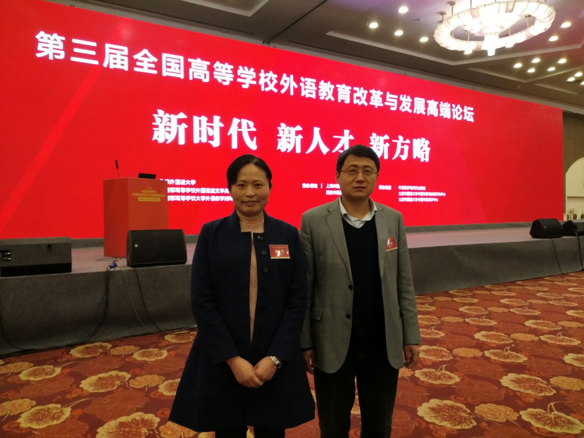 本网讯(通讯员:崔芳、马兰)3月24日,第三届全国高等学校外语教育改革与发展高端论坛于在北京开幕。2000余位高校校长、外语教育专家、学者、教学管理者与一线教师云集论坛,共谋中国高等外语教育改革与发展新时代大计,同书中国高等外语教育改革与发展奋进之笔。我校外国语学院副院长王志宏、公共英语教学部副主任崔芳应邀参加此次论坛。