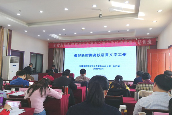 本网讯(通讯员:孟令怡)为进一步推动全省高校和直属中专学校语言文字工作,加快学校语言文字规范化、标准化建设,3月27至28日安徽省语言文字工作委员会办公室在合肥举办全省高校和厅直属中专学校语言文字工作机构负责人培训班。全省88所高校及厅直属中专学校语言文字工作机构的近百名代表与会。我校教务处副处长孙成伟参加了本次培训。