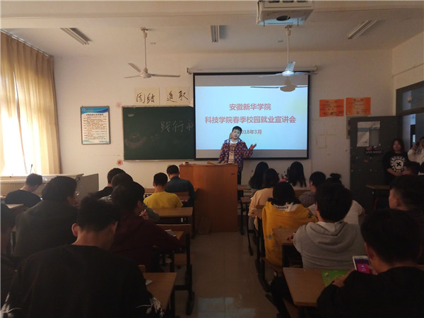 本网讯(通讯员:肖华君)为进一步推动2018届毕业生就业工作,为毕业生提供良好的服务。近日,科技学院举办了春季就业宣讲会。安徽微言大义信息咨询有限公司、宝贝地球村、安徽浩思教育科技有限公司、安徽乐悠扬钢琴培训有限公司4家单位以及150名毕业生参加了此次宣讲会,学管秘书、毕业班辅导员全程参与,现场指导学生求职技巧,端正求职心态。