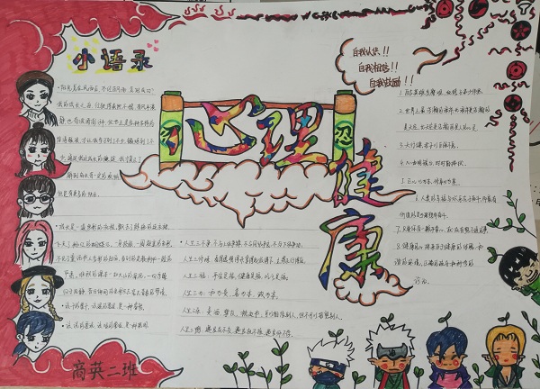 活动中,各班级手抄报以“聆听心韵,幸福成长”为主题,构思新颖,画面美观,文字优美、色彩和谐,在手抄报中融入了自己对心理健康教育的理解。其中,2017级英语本科1班以“快乐生活,心理健康”为题,引导大学生们要聆听自己内心的声音。2017级商务英语本3班讲述了六种保持心理健康的方法。2017商务英语1班通过漫画形式解读了幸福的含义。2017商务英语2班从自我认识,自我相信,自我鼓励三个方面展开主题。各个班级手抄报各具特色,充满新意。