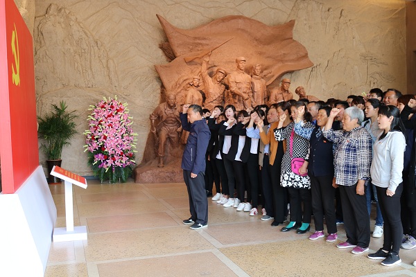 老党员带领广大党员重温入党誓词,郑重宣誓,祭奠革命先烈,激励在场党员争做坚定践行习近平新时代中国特色社会主义思想的合格党员。随后,党员们依次瞻仰为党、为国家、为人民不断付出生命的革命先烈,绕行纪念碑一周,追思先烈,感恩幸福。