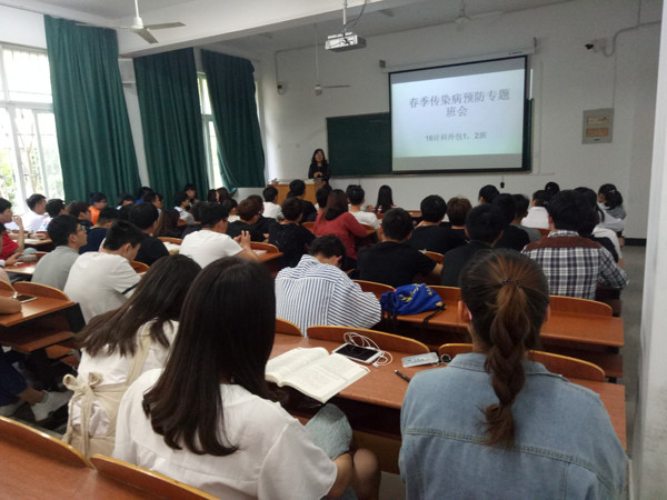 春季是传染病的高发季节,许多传染病能引起其他较危重的并发症。一些常见的传染性疾病如流行性感冒、肺结核、麻疹、水痘、腮腺炎等呼吸道传染病,大多发生在春季。为了及时防范春季传染病的发生,确保学生身体健康,信息工程学院要求辅导员近期召开了“预防春季传染病”的主题班会。本次主题班会教育学生在日常生活中要注意个人卫生,养成良好的饮食习惯,做好卫生值日,保持环境清洁,经常锻炼身体,增强身体素质,同时教育引导学生熟记预防疾病15字诀:“洗净手、喝开水、吃熟食、常通风、晒衣被”。