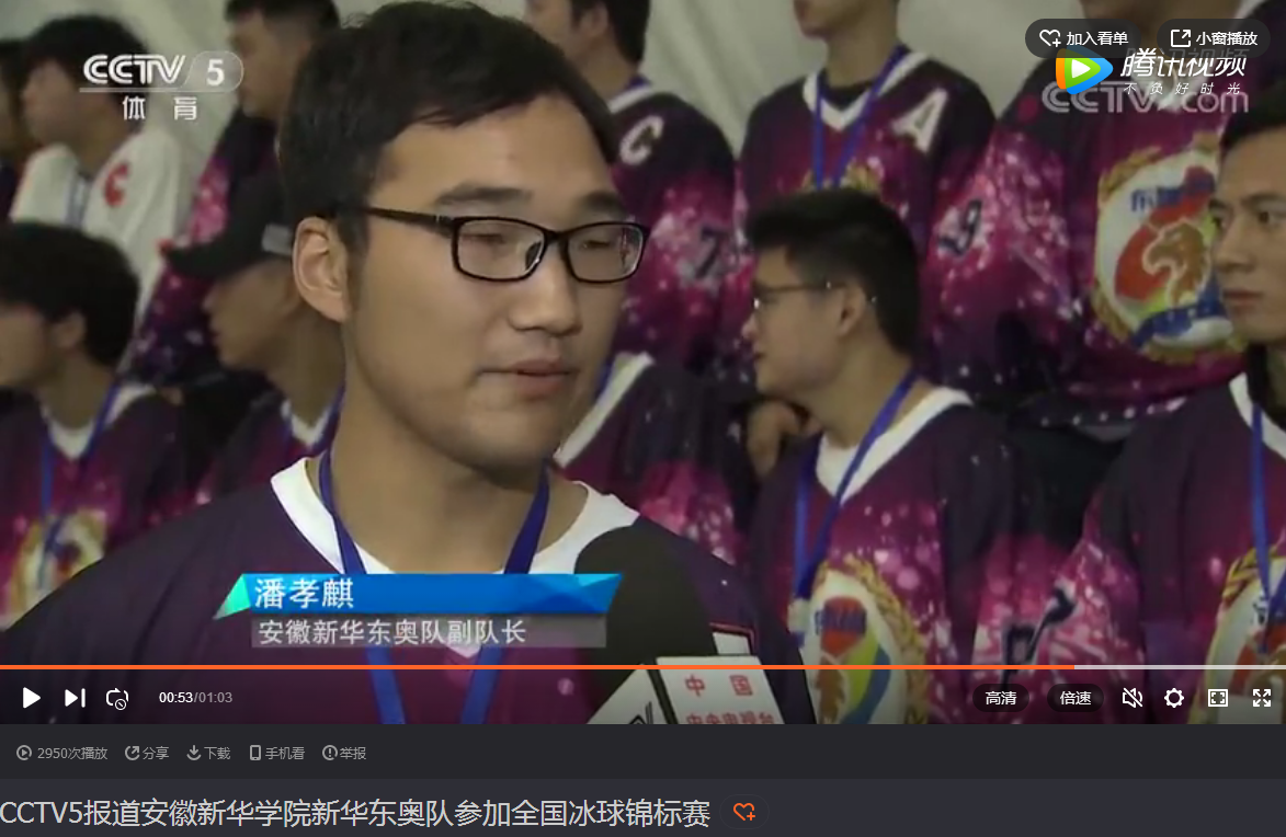央视体育频道:安徽新华学院新华东奥队参加全国冰球锦标赛