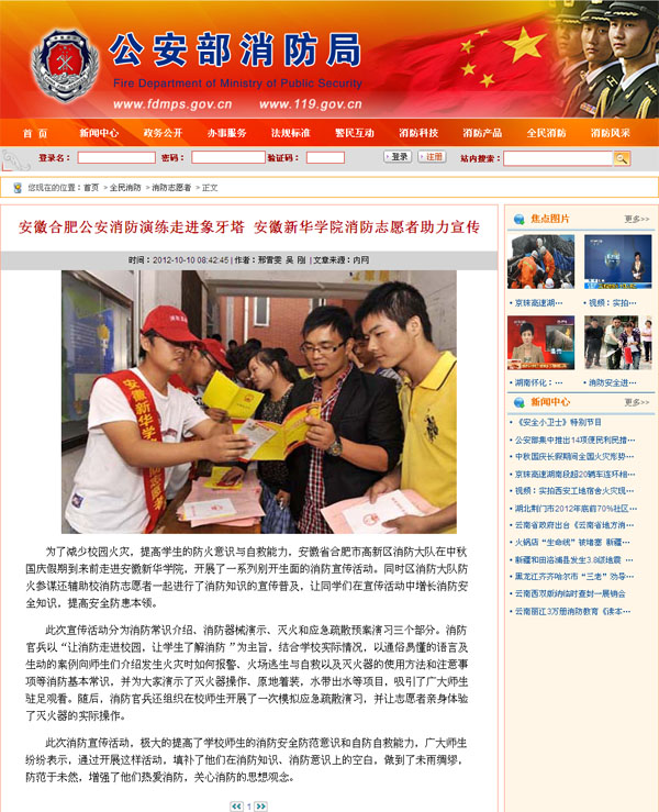 中国消防在线网站新闻链接:http://119.china.com.cn/shyxf/txt/2012-09/25/content_5365150.htm