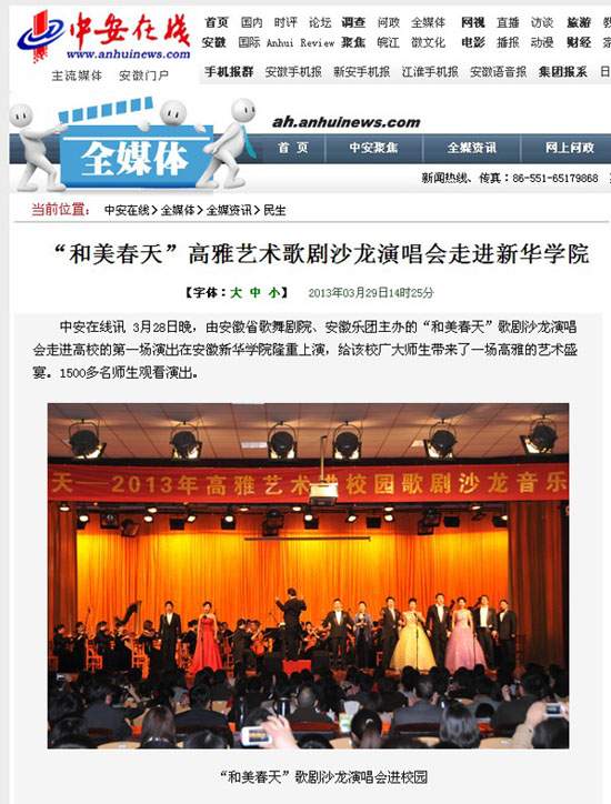 中安在线报道歌剧沙龙演唱会走进我校