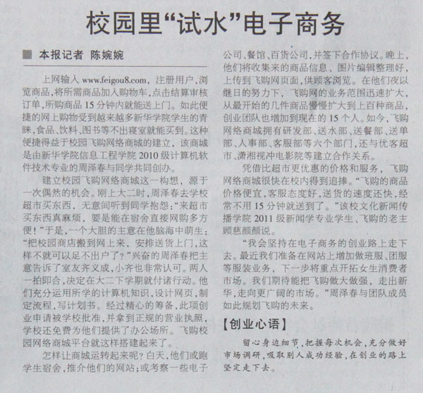 安徽日报:校园里“试水”电子商务