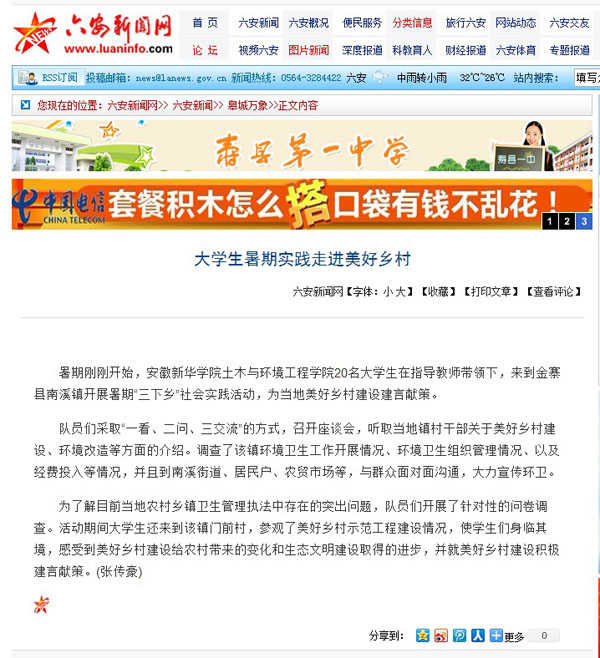 六安新闻网:大学生暑期实践走进美好乡村