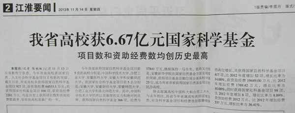 安徽日报:我省高校获6.67亿元国家科学奖学金