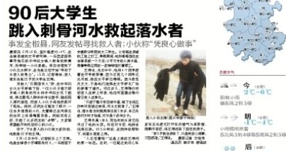 江淮晨报:90后大学生跳入刺骨河水救起落水者
