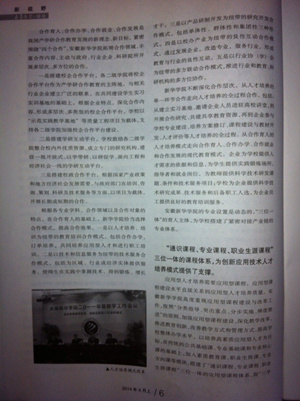 合作育人、合作办学、合作就业、合作发展是我国产学研合作教育发展的新理念、新目标。紧密围绕“四个合作”,安徽新华学院拓展合作领域,丰富合作内容,主动与政府、行业企业、科研院所开展多层次、多方位的合作。