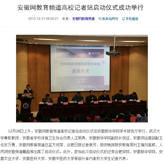 安徽网:安徽网教育频道高校记者站启动仪式成功举行