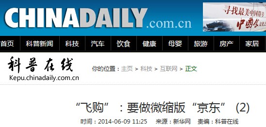 中国日报网:“飞购”:要做微缩版“京东”