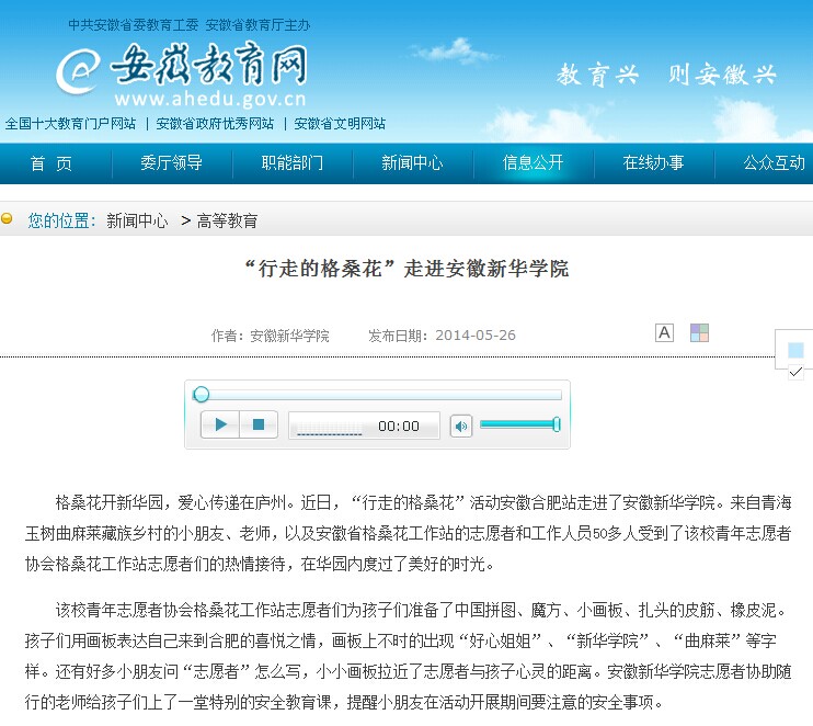 安徽教育网:“行走的格桑花”走进安徽新华学院