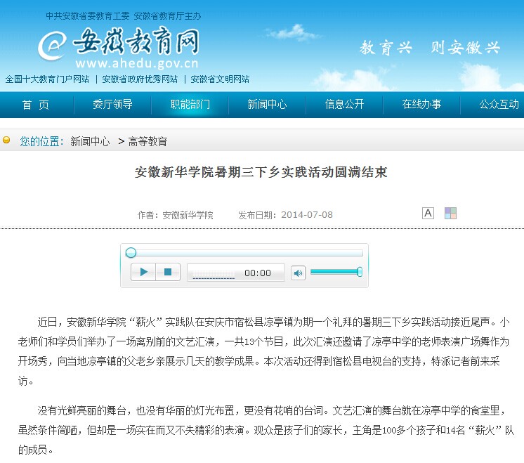 安徽教育网:安徽新华学院暑期三下乡实践活动圆满结束