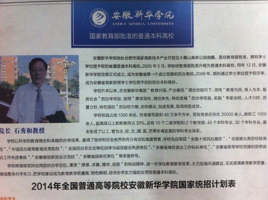 安徽青年报:安徽新华学院——国家教育部批准的普通本科高校