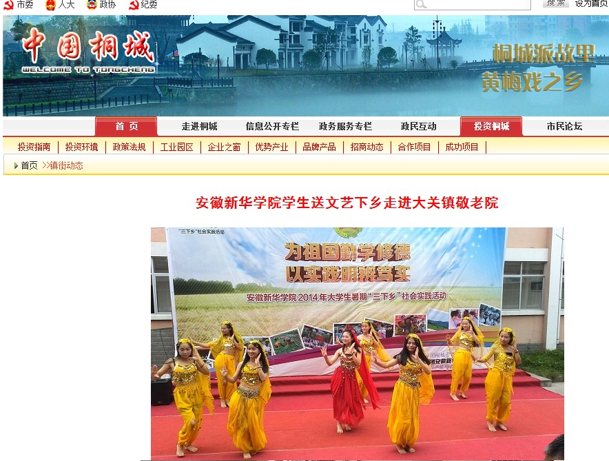 中国桐城门户网站:安徽新华学院学生送文艺下乡走进大关镇敬老院