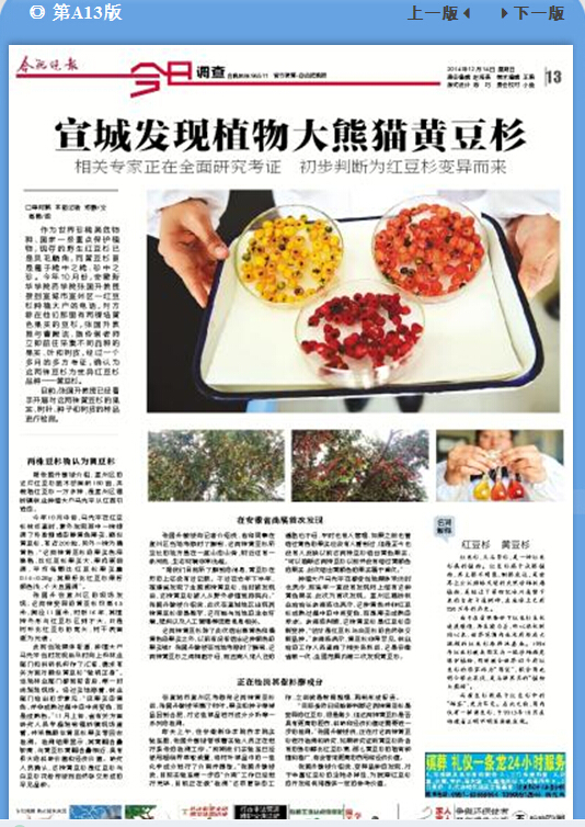 《合肥晚报》整版报道我校张国升教授发现植物“大熊猫”黄豆杉
