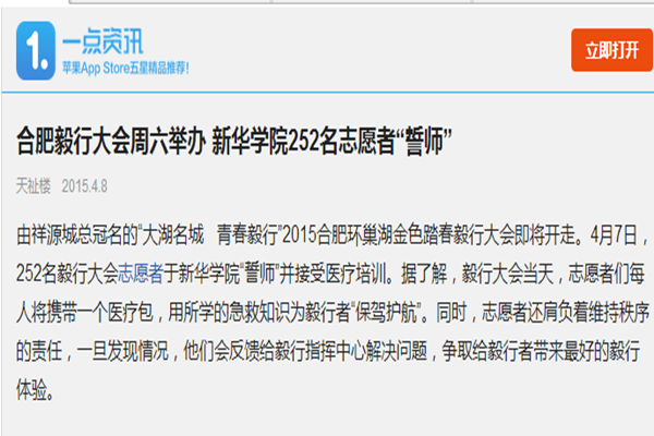一点资讯:合肥毅行大会周六举办 新华学院252名志愿者“誓师”