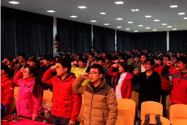 4月7日晚,安徽新华学院大礼堂,“大湖名城 青春毅行”志愿者动员大会在这里召开,252名志愿者举起右拳,庄严宣誓,将为毅行者做好服务工作。