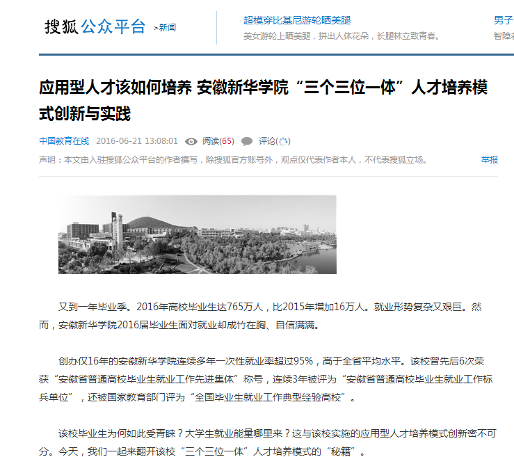 搜狐网:《中国教育报》刊登:安徽新华学院争创安徽省地方应用型高水平大学