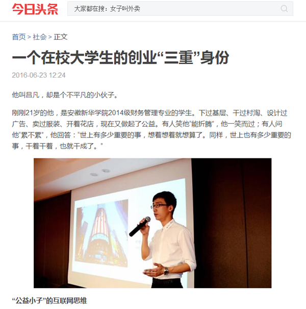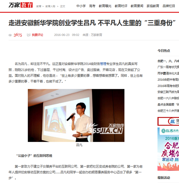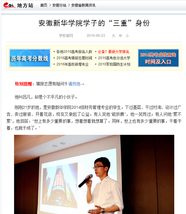 中国教育在线、今日头条、万家热线、UC头条:安徽新华学院学子的“三重”身份