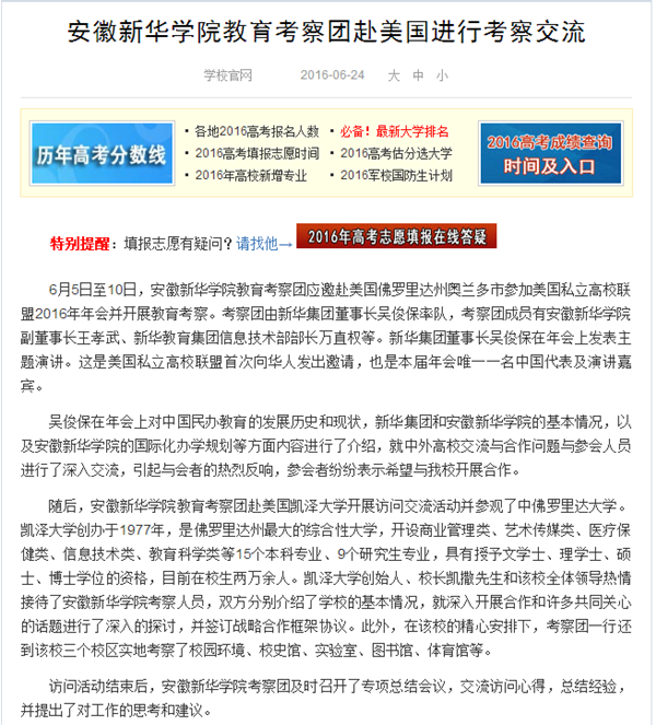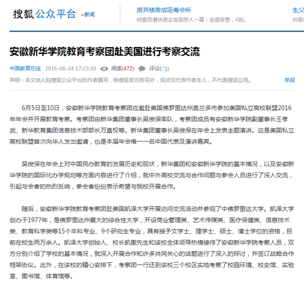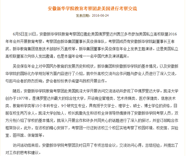 中国教育在线、搜狐网、万家热线:安徽新华学院教育考察团赴美国进行考察交流