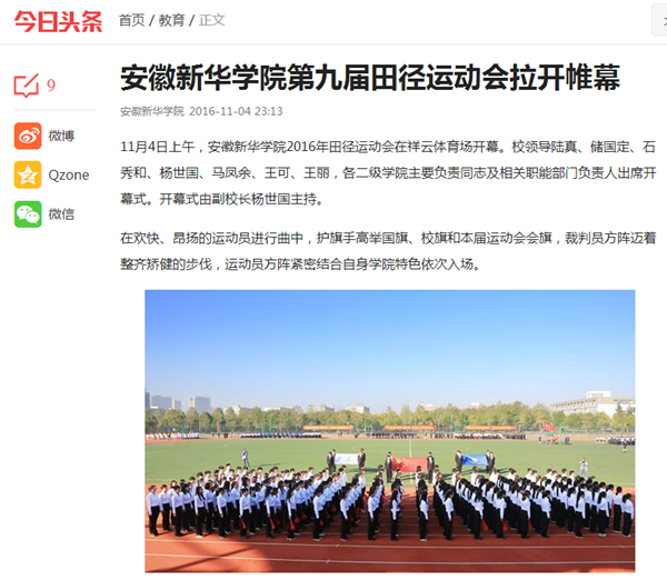 今日头条:安徽新华学院第九届田径运动会拉开帷幕