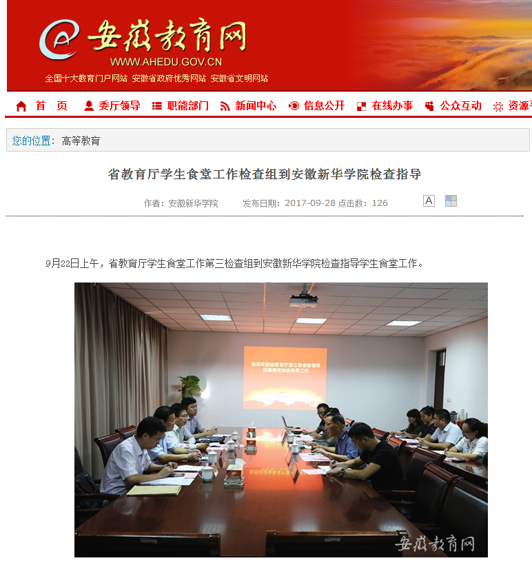 安徽教育网:省教育厅学生食堂工作检查组到安徽新华学院检查指导