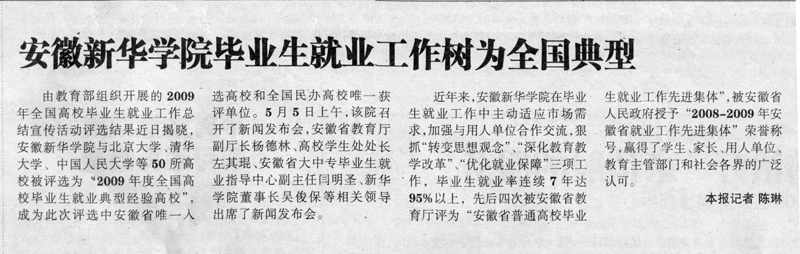 《工商导报》:安徽新华学院毕业生就业工作树为全国典型